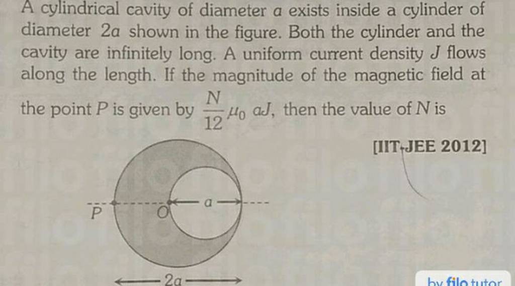 A cylindrical cavity of diameter a exists inside a cylinder of diameter 2..
