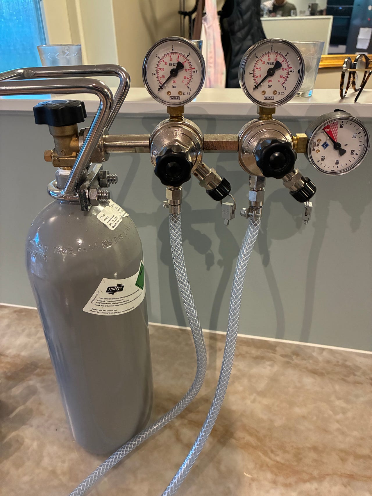 Dubbel tryckregulator med armerad slang och ball lock, CO2 | Blocket