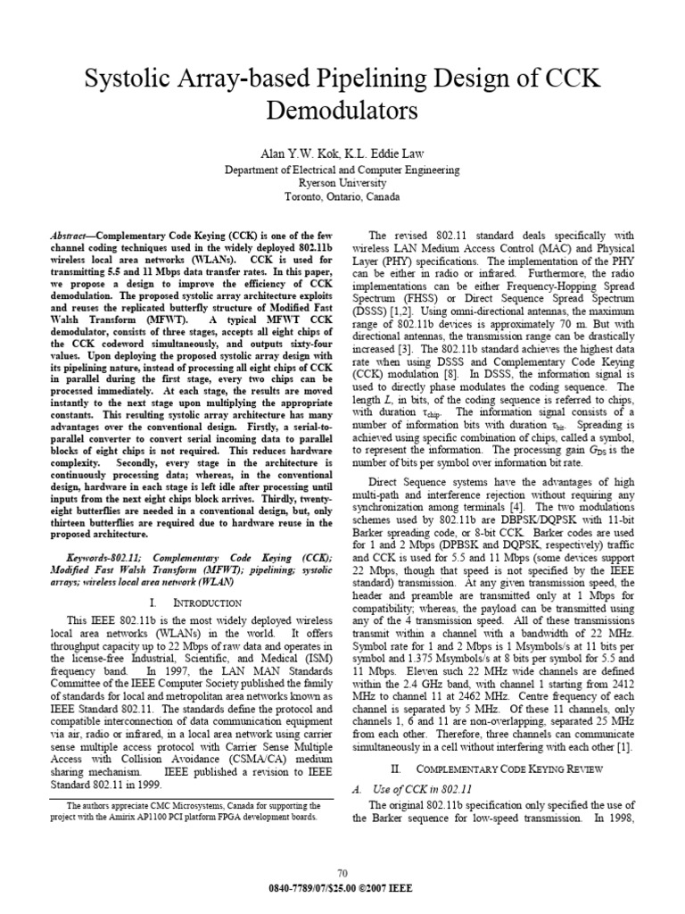 Systolic Array Based Pipelining Design CCK Demodulator 2 | PDF | Ieee ...