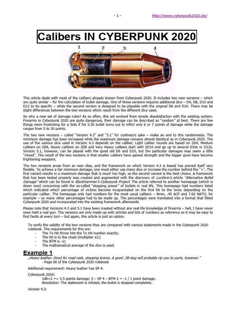Cyberpunk 2020 Calibers in Cyberpunk 2020 | PDF | Ammunition | Ballistics