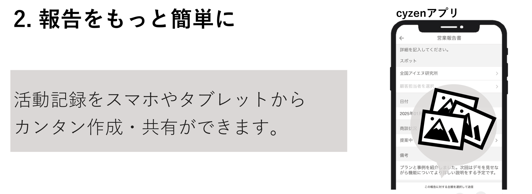 訪問営業・外回り活動の業務効率化アプリならcyzen(サイゼン)|スマホで簡単に使える活動管理アプリ