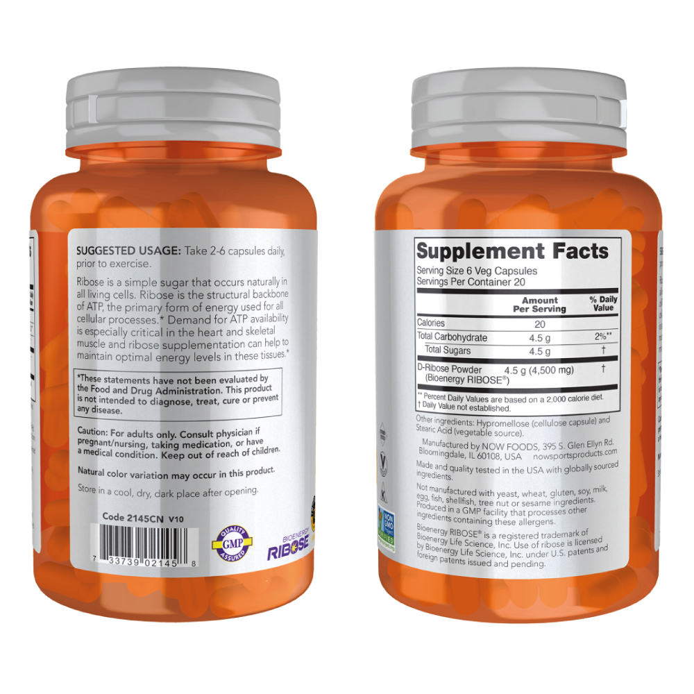 Now Foods D-Ribose 750mg 120 Vege Caps - Best Price Nutrition
