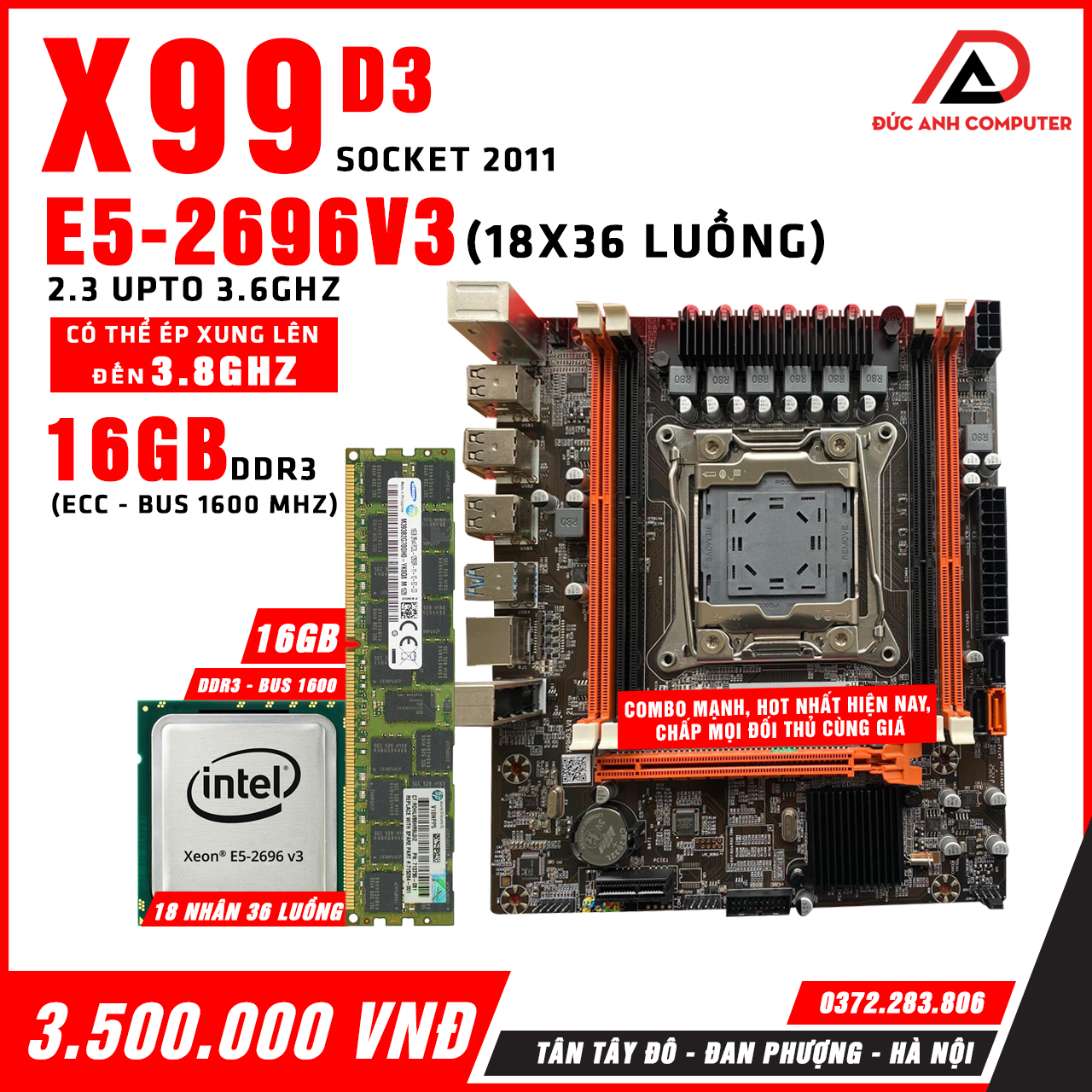 Combo Main x99 D3 - Cpu xeon e5 - 2696v3 - ram 16gb ddr3 bus 1600 Mạnh ...