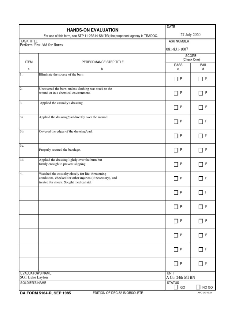 DA FORM 5164-R – HANDS-ON EVALUATION (LRA) | Army Pubs DA Form 2025