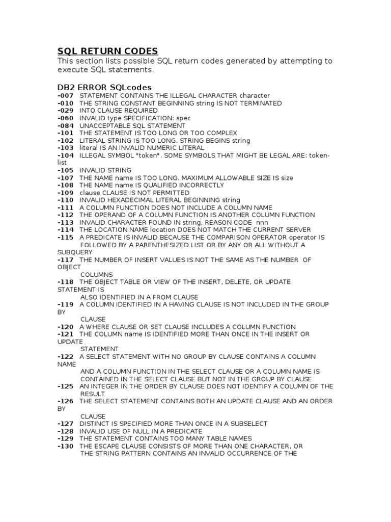DB2 SQL Return Codes Overview | PDF | Ibm Db2 | Sql