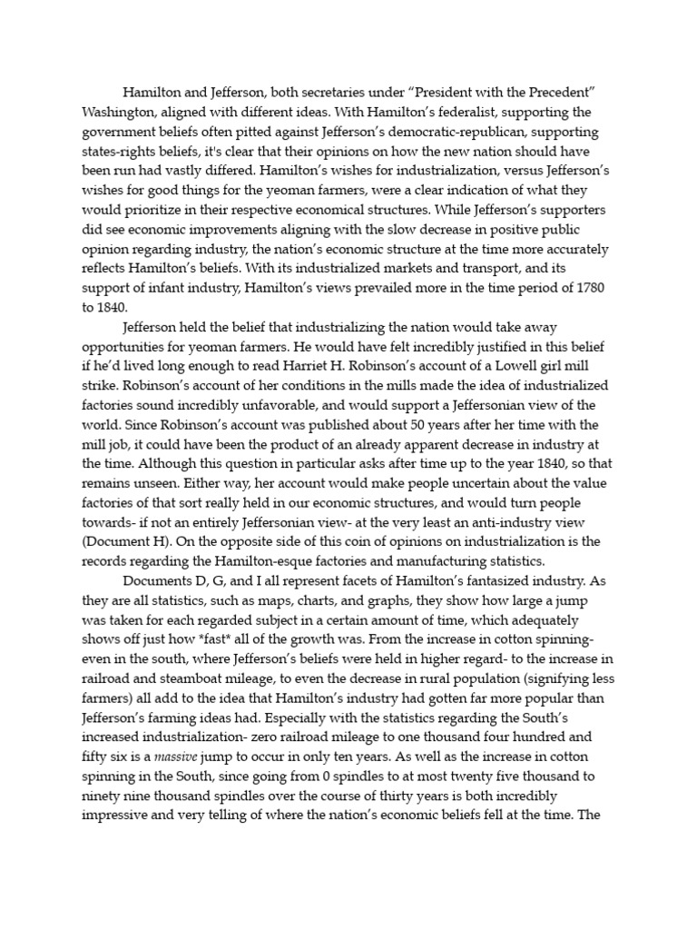 Example DBQ Response | PDF | Alexander Hamilton | Thomas Jefferson