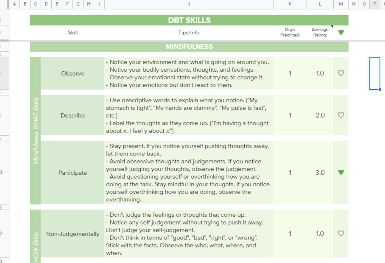 DBT Diary Card Journal - Easy-use Google Sheet | BPD Mood Tracker, Urge ...