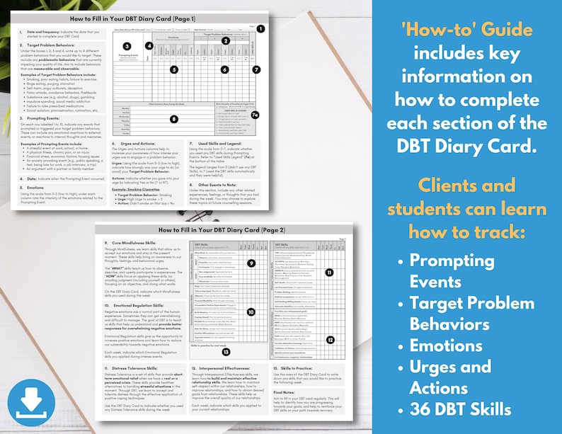 DBT Therapy Workbook Bundle: Skills Training, Diary Cards, Worksheets ...