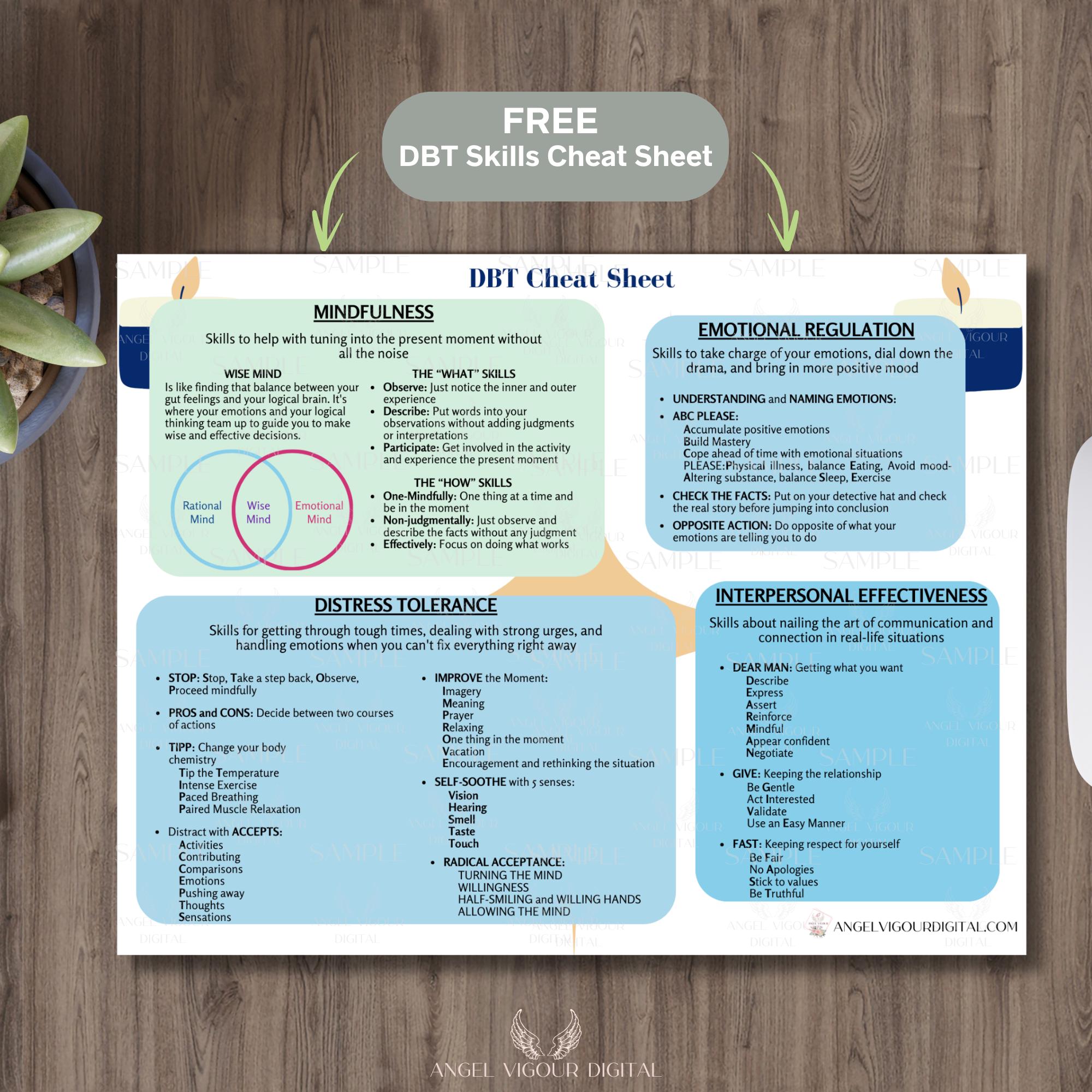 DBT Cheat Sheet Printable Dialectical Behavior Therapy Guide for ...