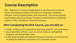 What is DCA (Diploma of Computer Application) Detail, Syllabus,Coursess.pdf