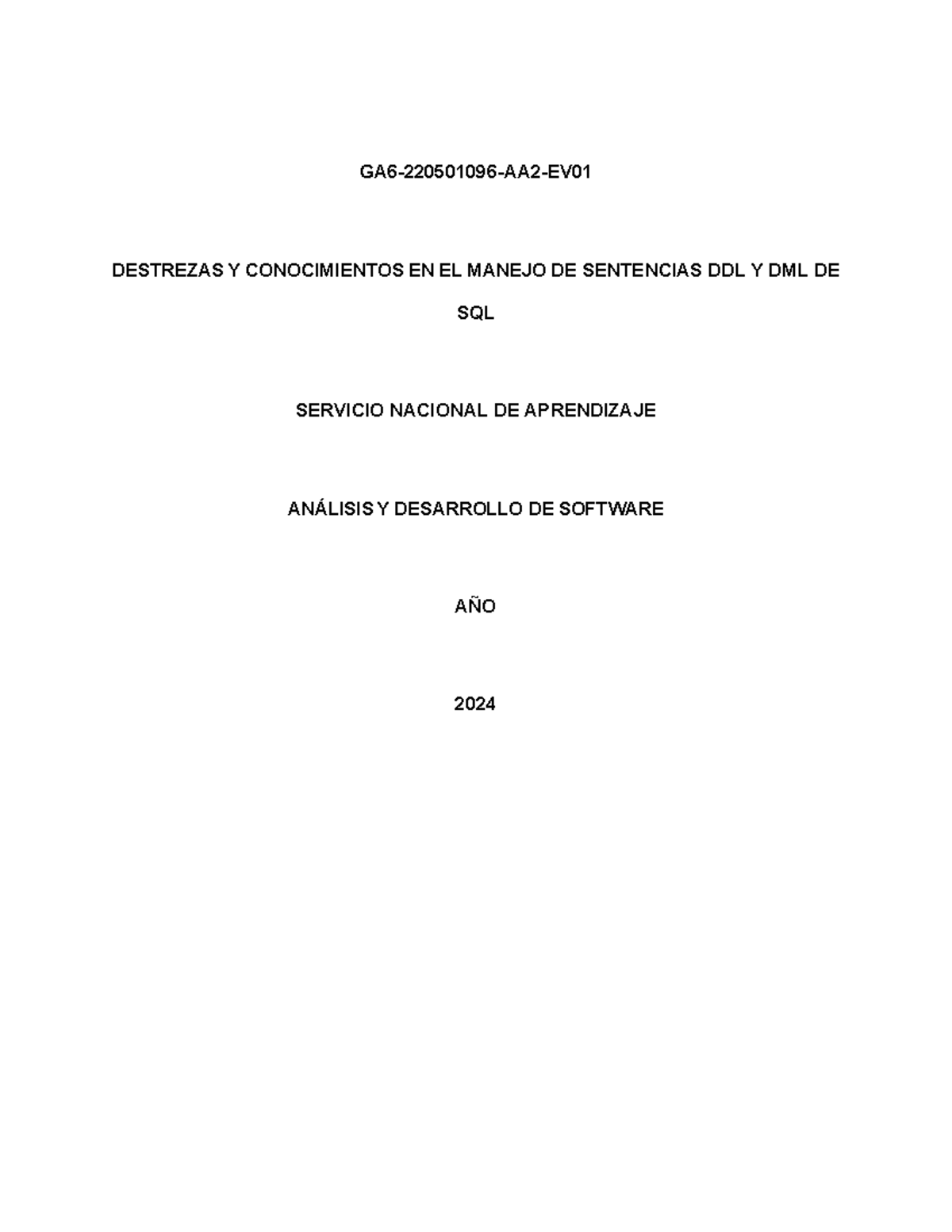 GA6 721910468: DDL y DML en SQL - Destrezas y Conocimientos 2024 - Studocu