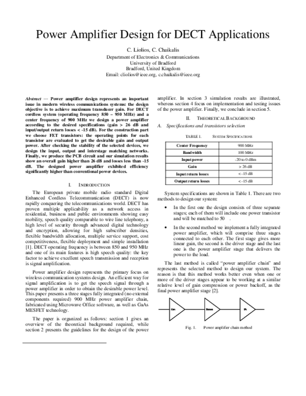 (PDF) Power Amplifier Design for DECT Applications | Costas Chaikalis ...