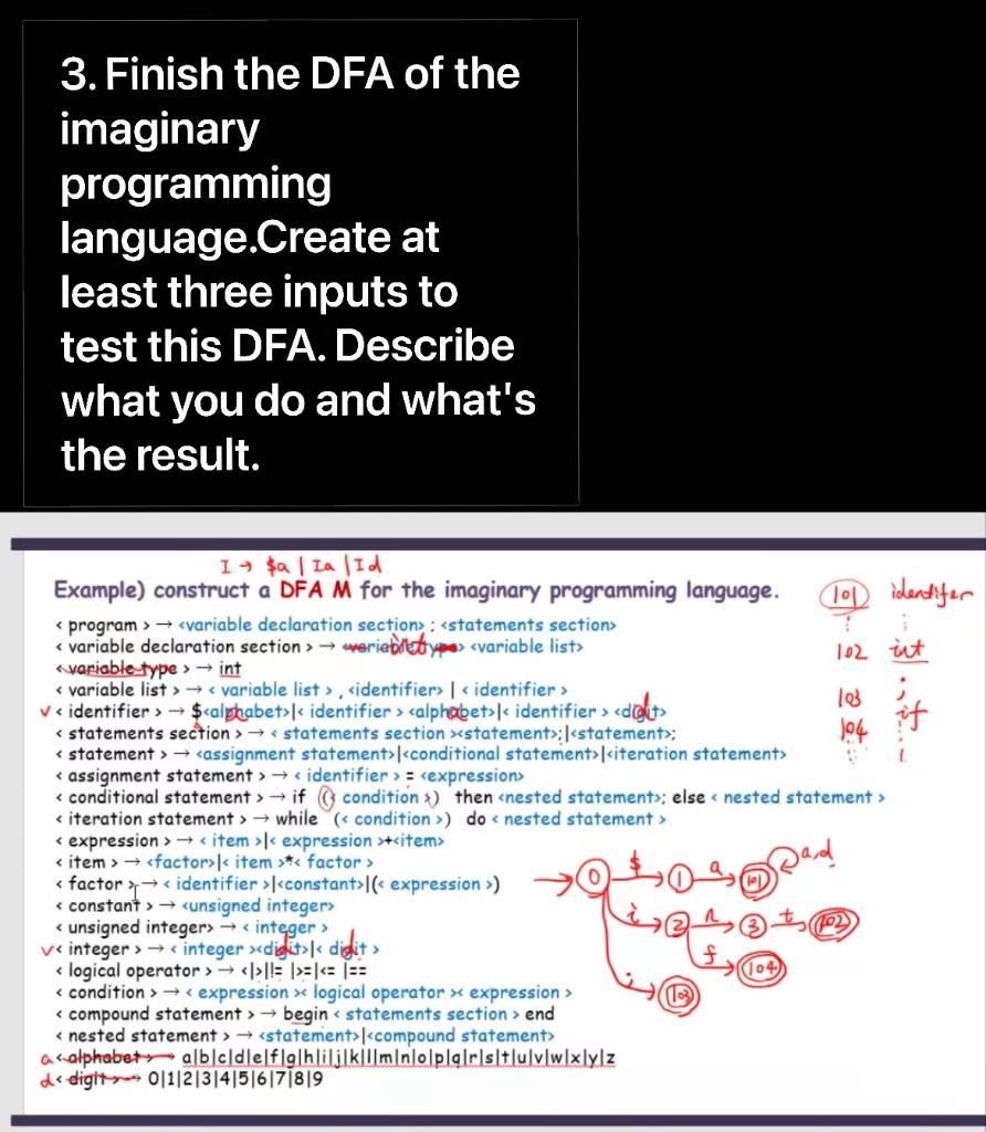 Solved 3. Finish the DFA of the imaginary programming | Chegg.com