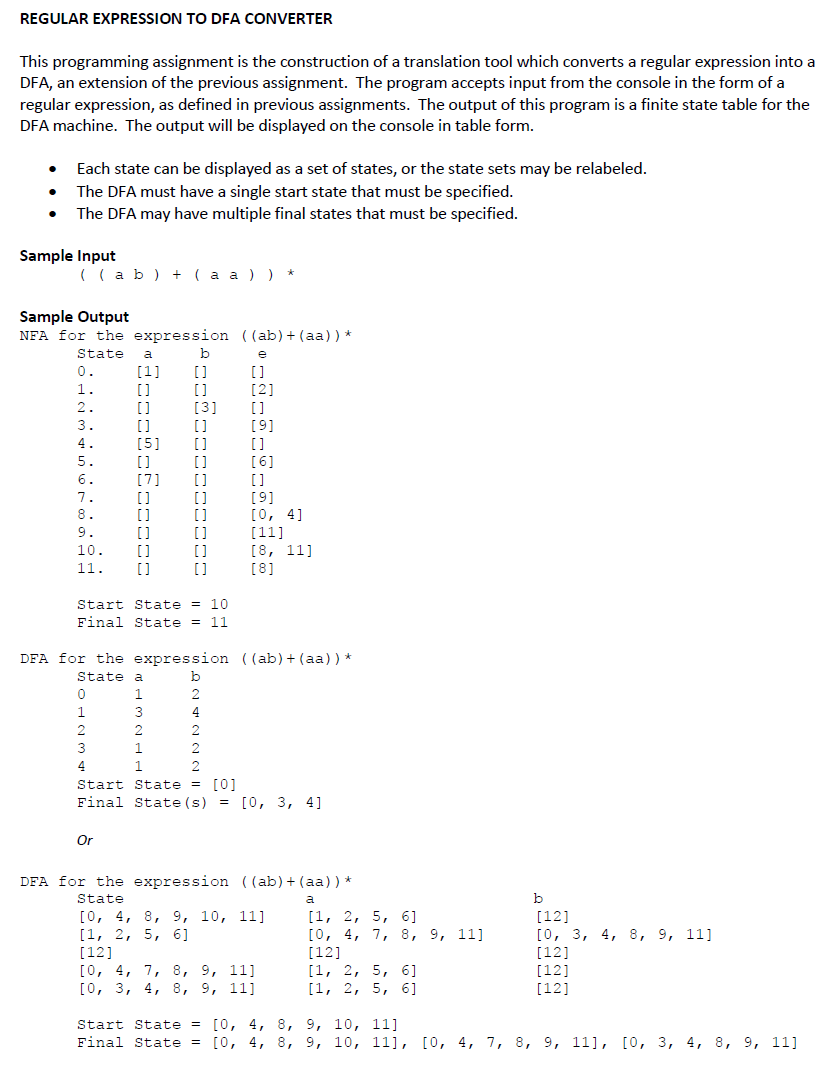 Solved REGULAR EXPRESSION TO DFA CONVERTER This programming | Chegg.com