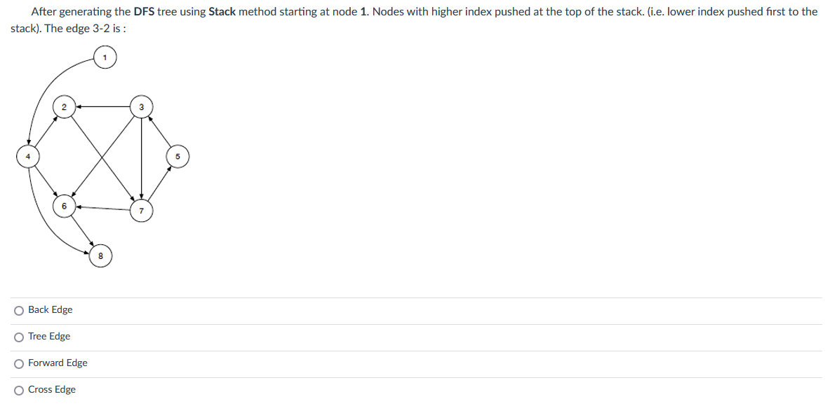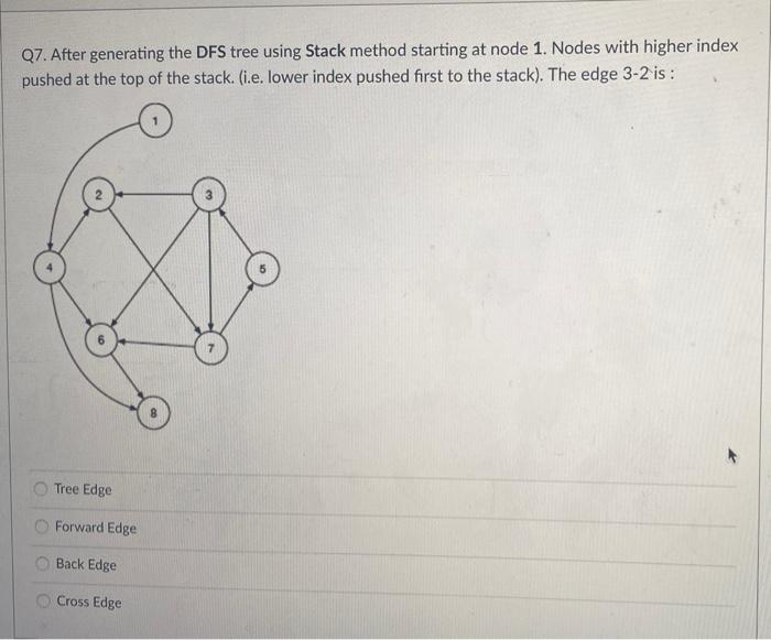 Solved Q7. After generating the DFS tree using Stack method | Chegg.com