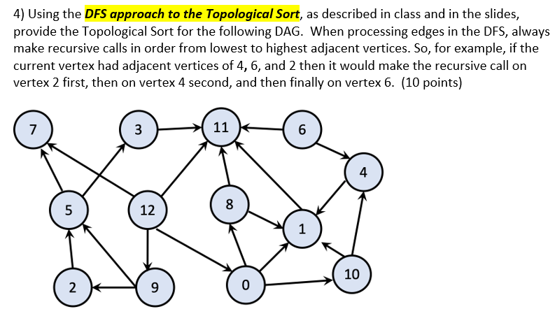 Solved 4) Using the DFS approach to the Topological Sort, as | Chegg.com