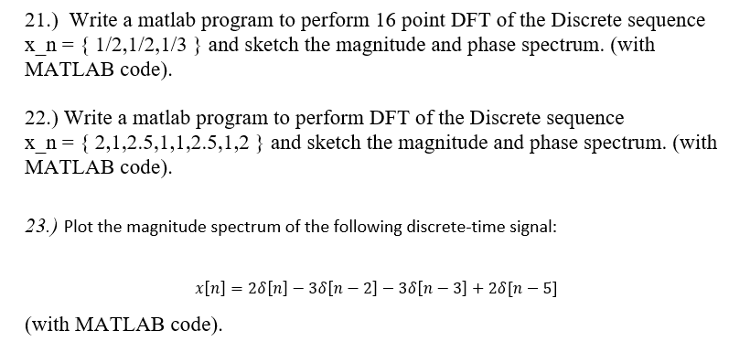 Solved 21.) Write a matlab program to perform 16 point DFT | Chegg.com