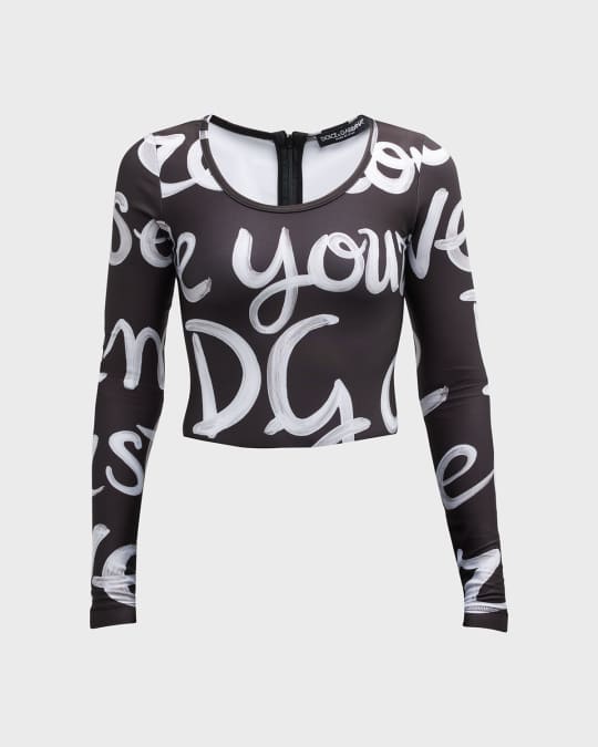 Dolce&Gabbana DG Love Yourself Script-Print Long-Sleeve Bodysuit ...
