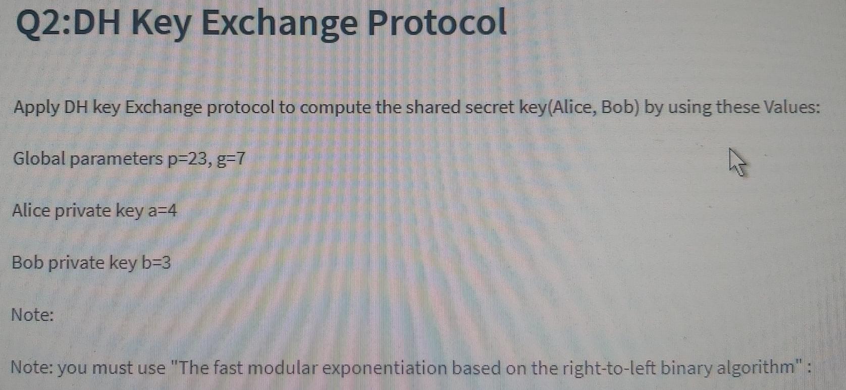Solved Q2:DH Key Exchange Protocol Apply DH key Exchange | Chegg.com