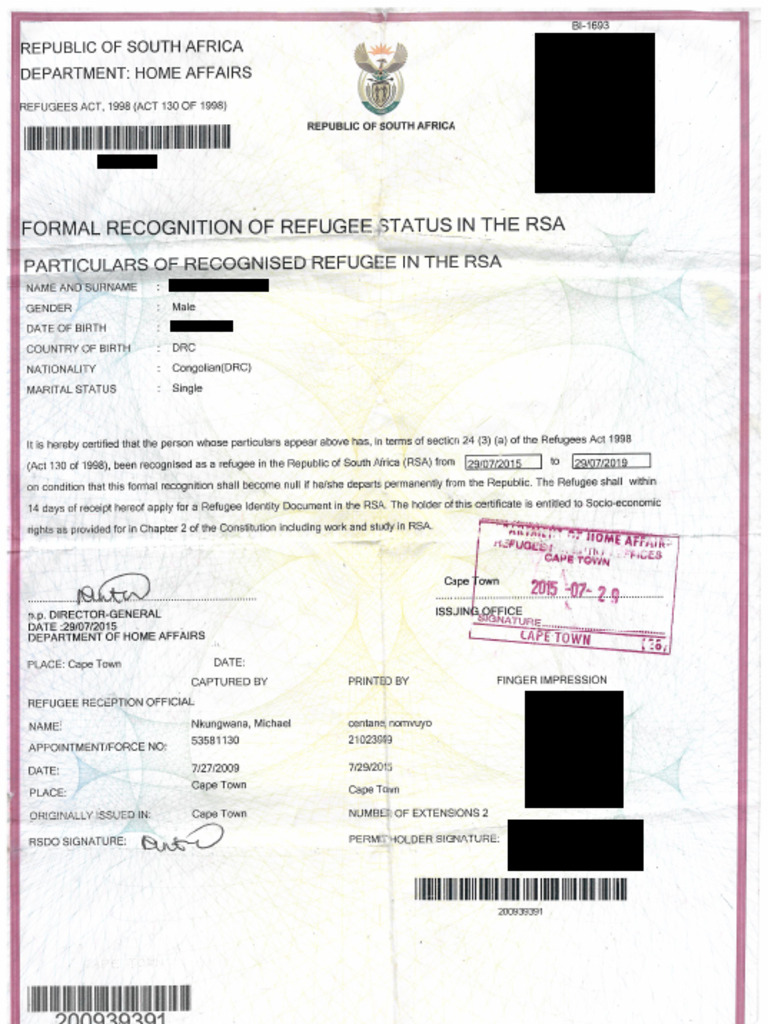 Document Example DHA Formal Recognition of Refugee Status | PDF