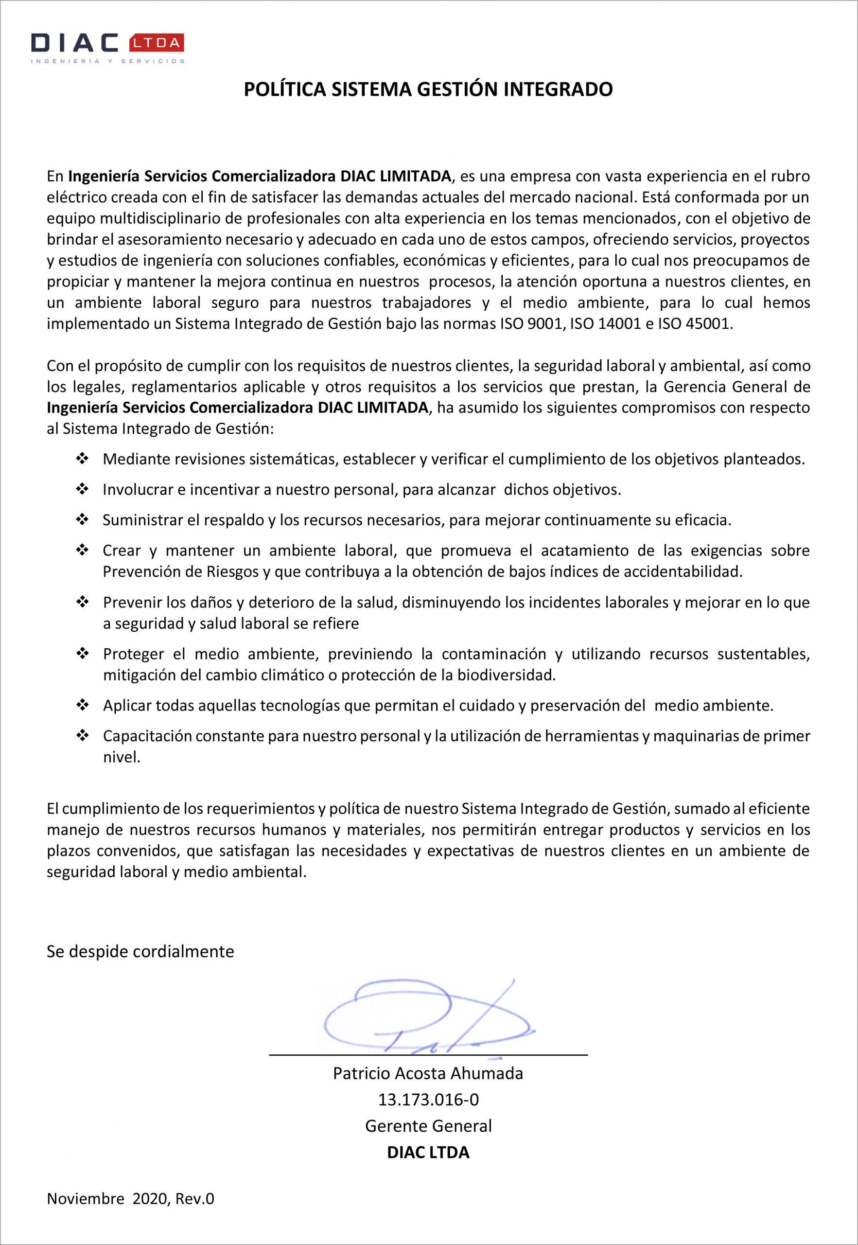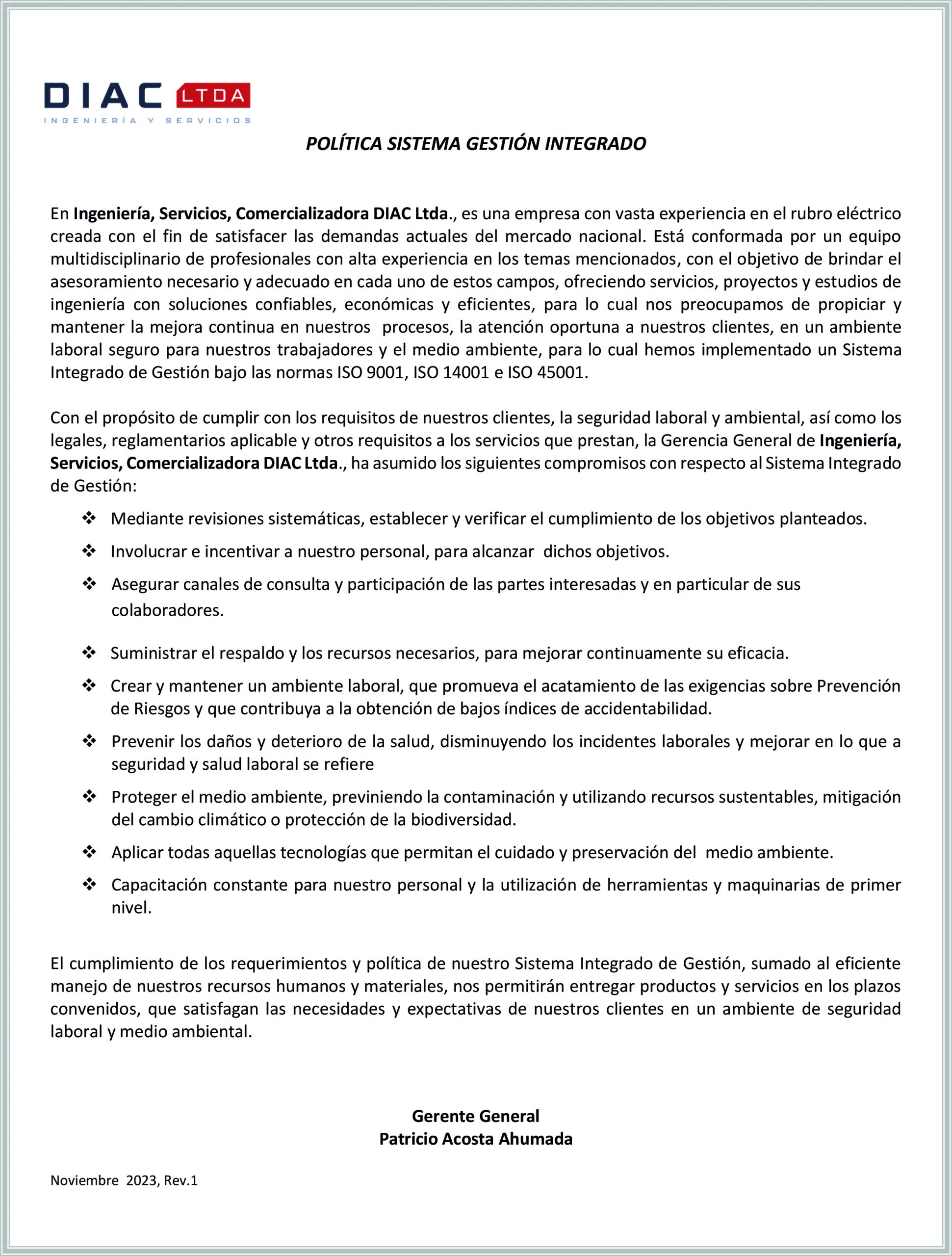 Politicas y Valores - Ingeniería y distribución Eléctrica Diac Ltda