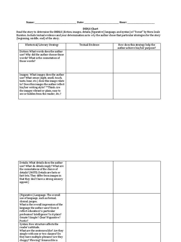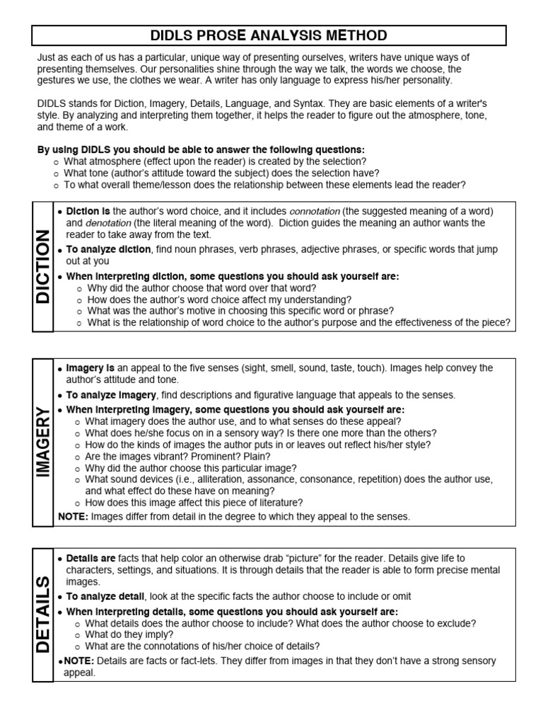 DIDLS (Diction, Imagery, Details, Language, and Sentence Structure ...