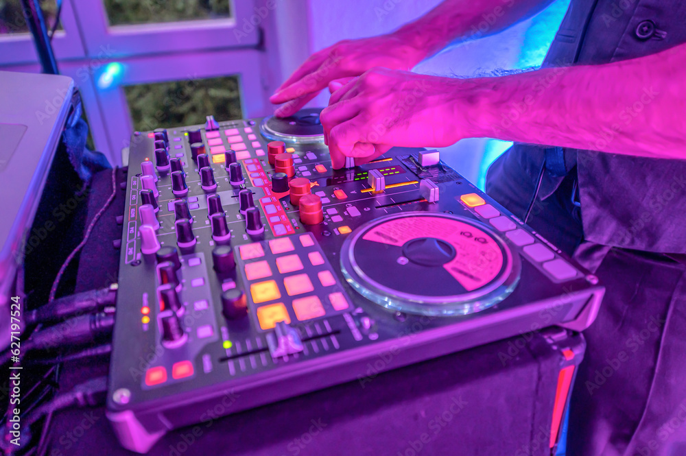 Professional DJ Equipment sound and audio mixer control panel with ...