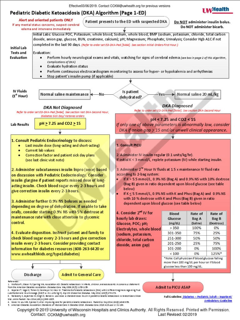 Pediatric Diabetic Ketoacidosis (DKA) Algorithm (Page 1-ED) : DKA ...