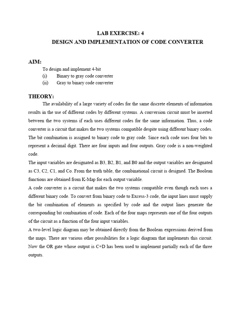Code Converter Design with Logic Gates | PDF | Logic Gate | Digital ...