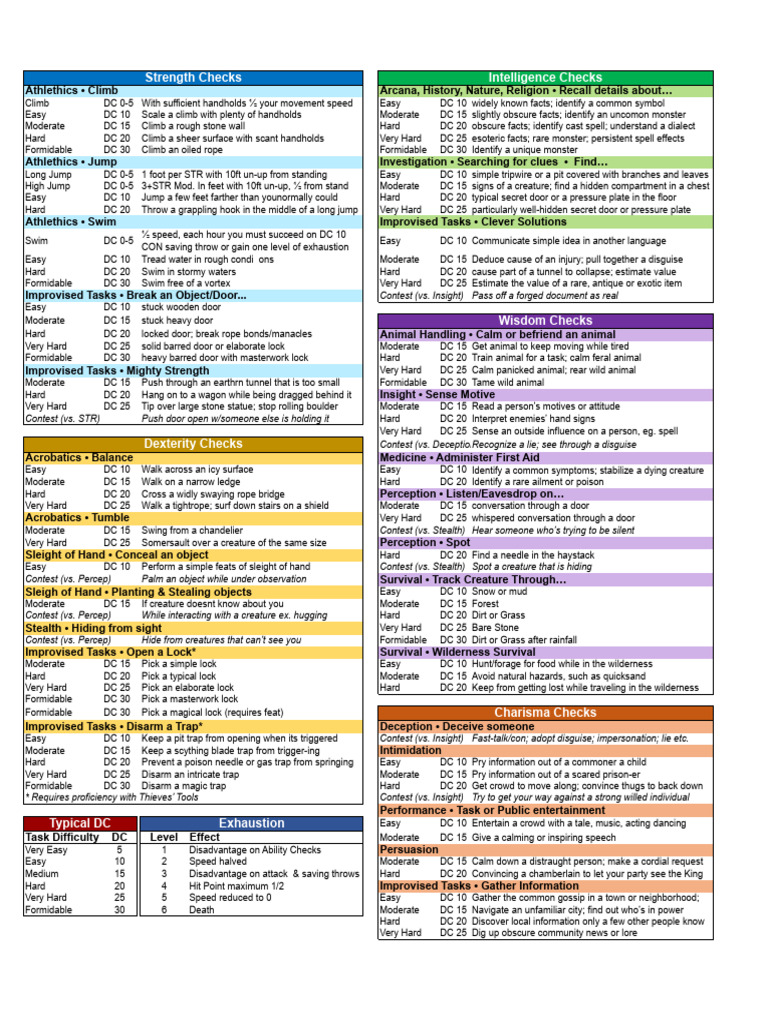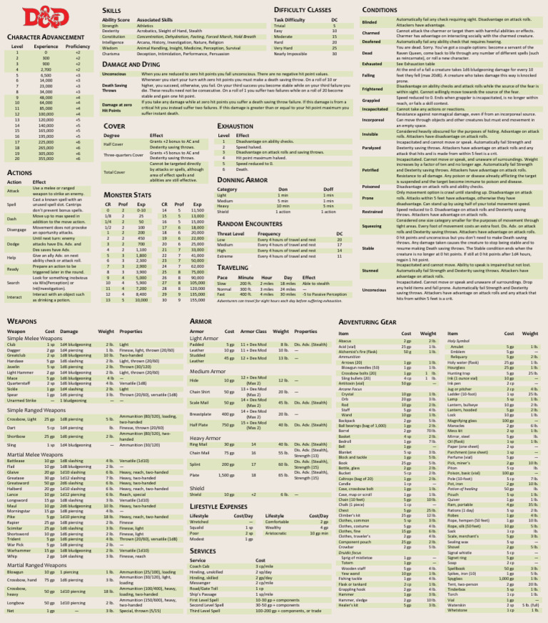 D&D 5E DM Cheat Sheet | PDF