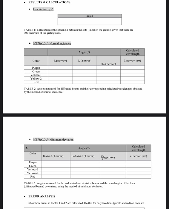 Solved • RESULTS & CALCULATIONS Calculation of d: dm) TABLE | Chegg.com