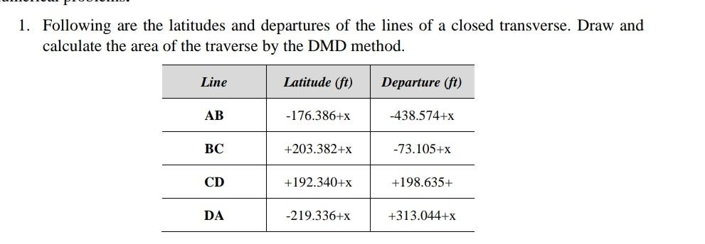 Solved Sample problem: Area by DMD • Given: A traverse with | Chegg.com