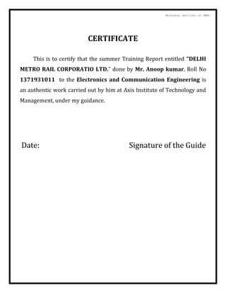 Gr summer fiel - DMRC INTERNSHIP - CERTIFICATE Chapter 1 Introduction ...