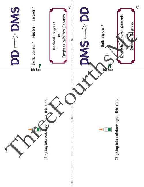 Degrees, Minutes, Seconds (DMS) and Decimal Degrees (DD) Foldable Notes