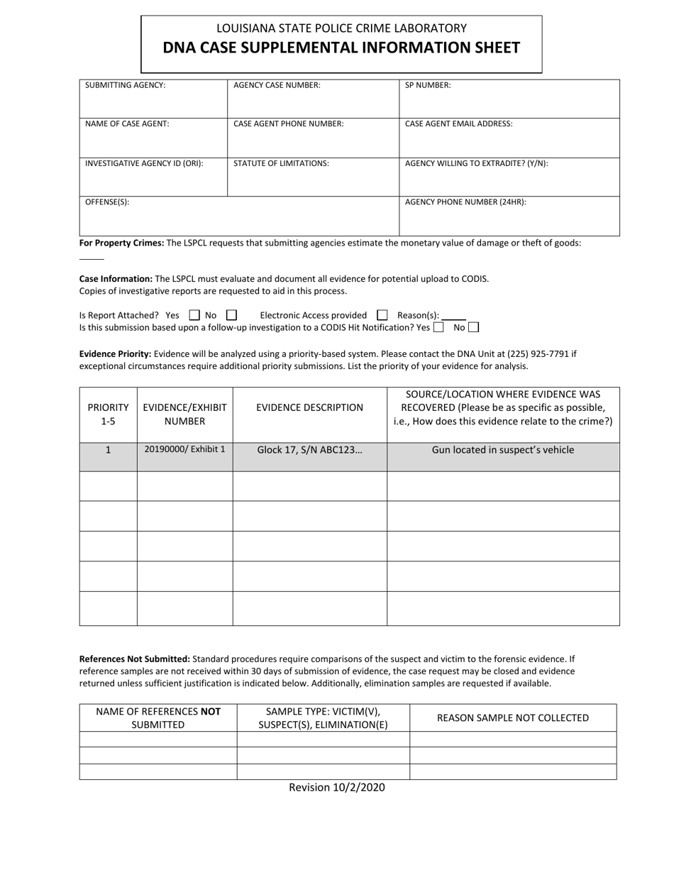 Louisiana Dna Case Supplemental Information Sheet - Fill Out, Sign ...