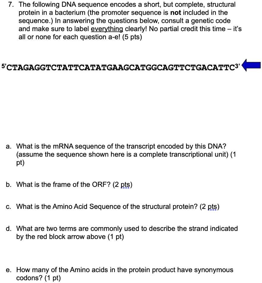 SOLVED: 7. (2 pts) Below is a DNA sequence encoding an mRNA strand ...