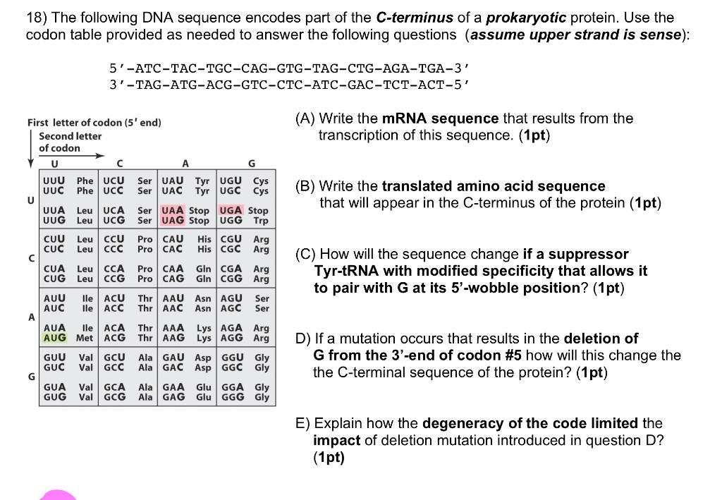 Solved 18) The following DNA sequence encodes part of the | Chegg.com