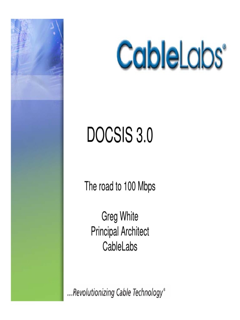 Docsis 3.0: The Road To 100 Mbps Greg White Principal Architect ...