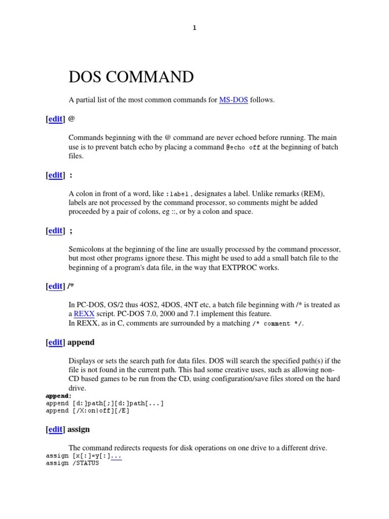 List of DOS Commands - Wikipedia, The Free Encyclopedia | PDF | Dos ...