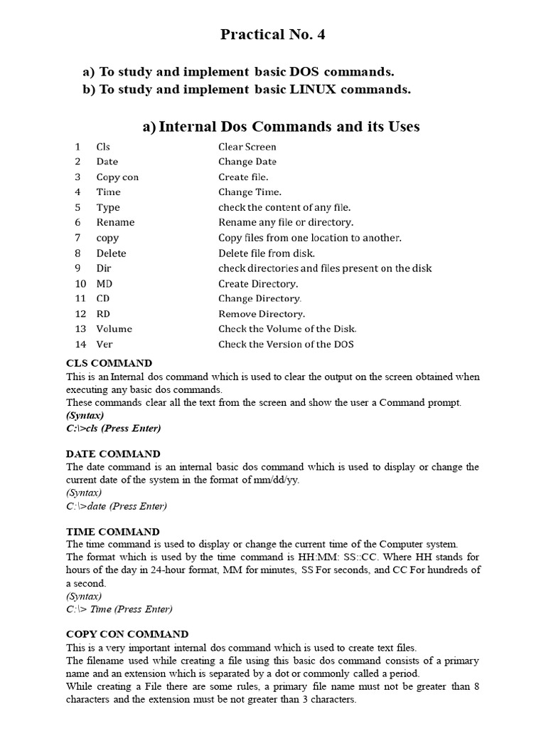 Practical 4 - DOS and LINUX Basic Commands | PDF | Computer File ...