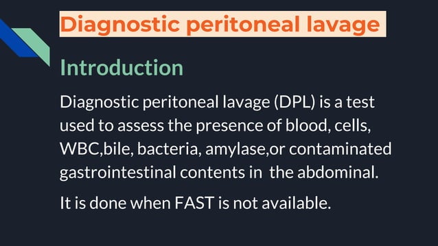 diagnostic peritoneal lavage (DPL) | PPTX | Death, Injury, or Military ...