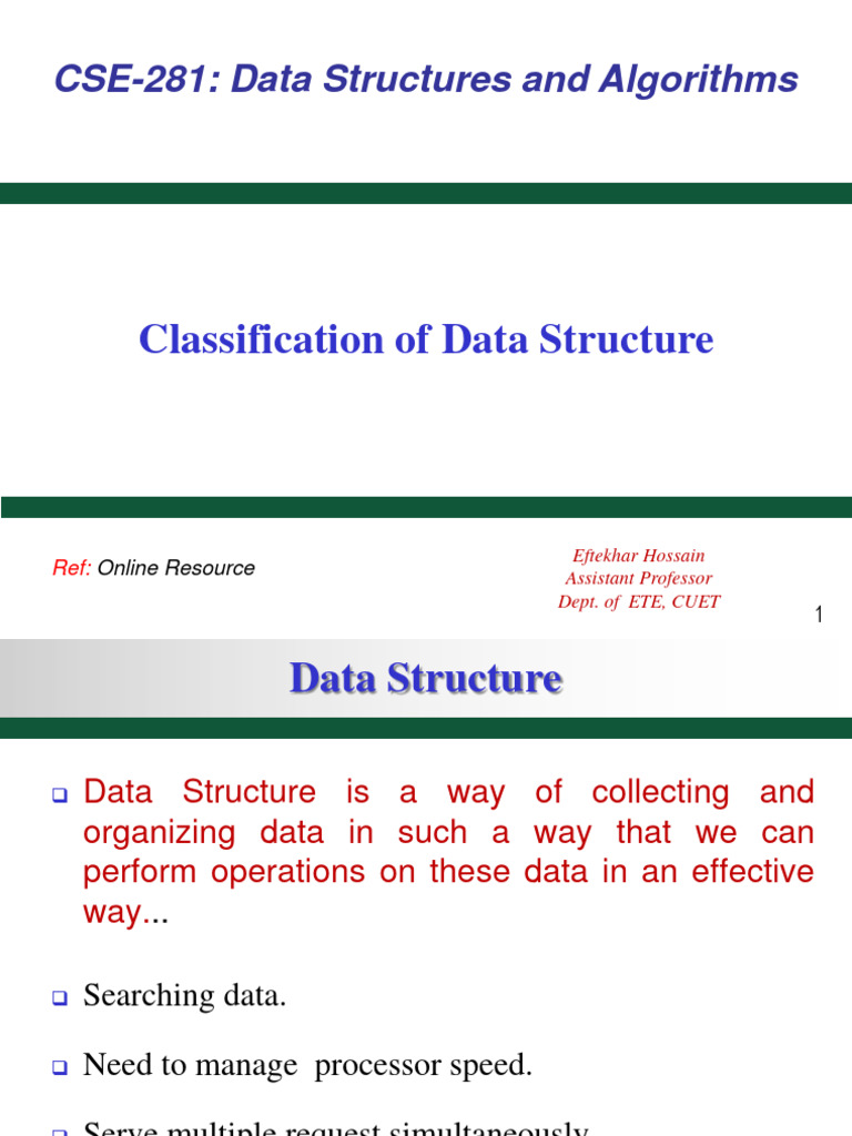 SOLUTION: Introduction to Data Structure, what is DS, Classification of ...
