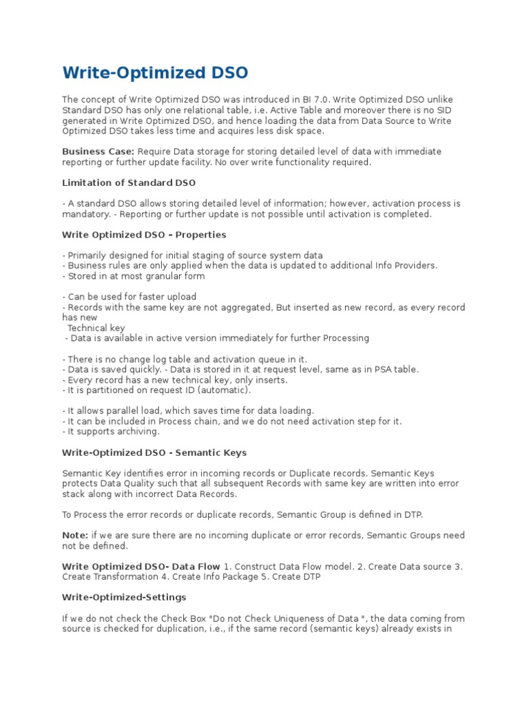 SAP BW - WDSO - Write Optimized DSO | PDF | Information Technology ...