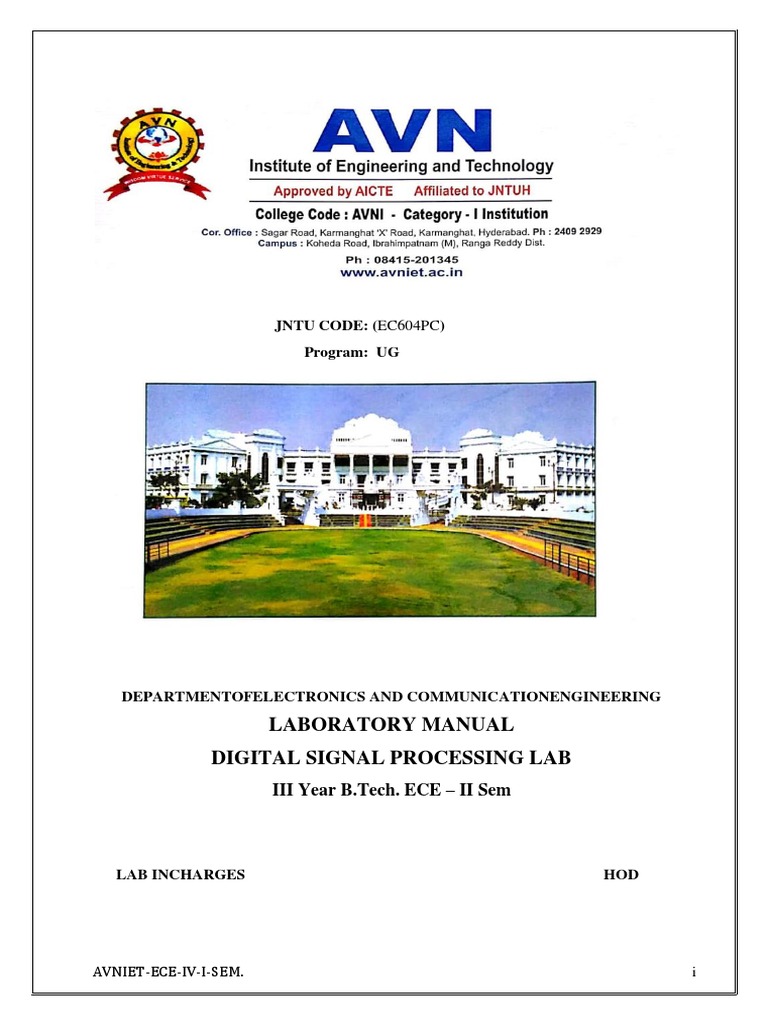 R23 DSP Lab Manual: Experiments in Digital Signal Processing - Studocu
