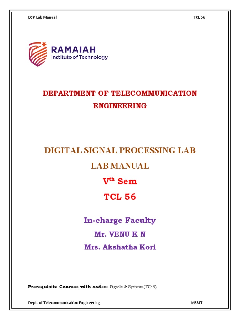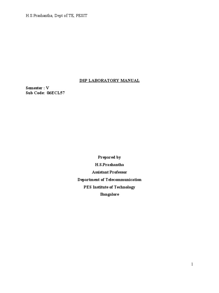 DSP Lab Manual PDF | PDF | Signal Processing | Electrical Engineering