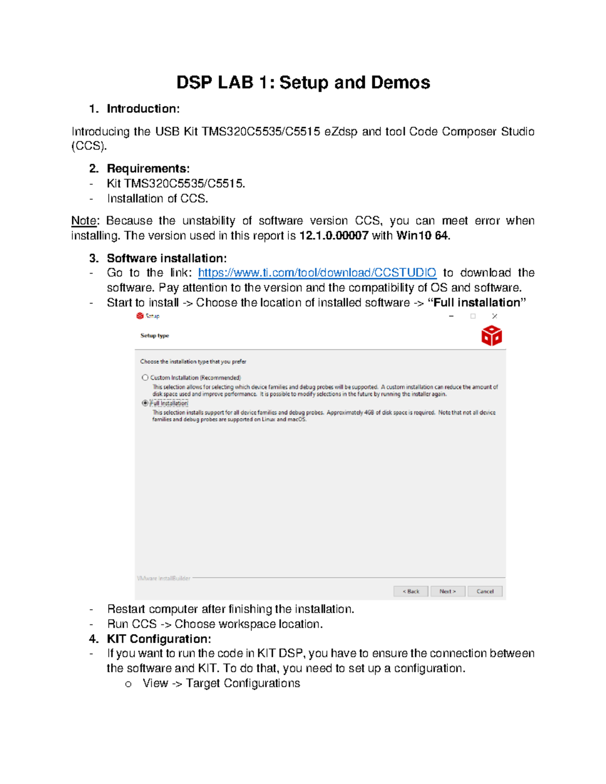 DSP LAB 1 - LAB1 for DSP - DSP LAB 1: Setup and Demos 1. Introduction ...