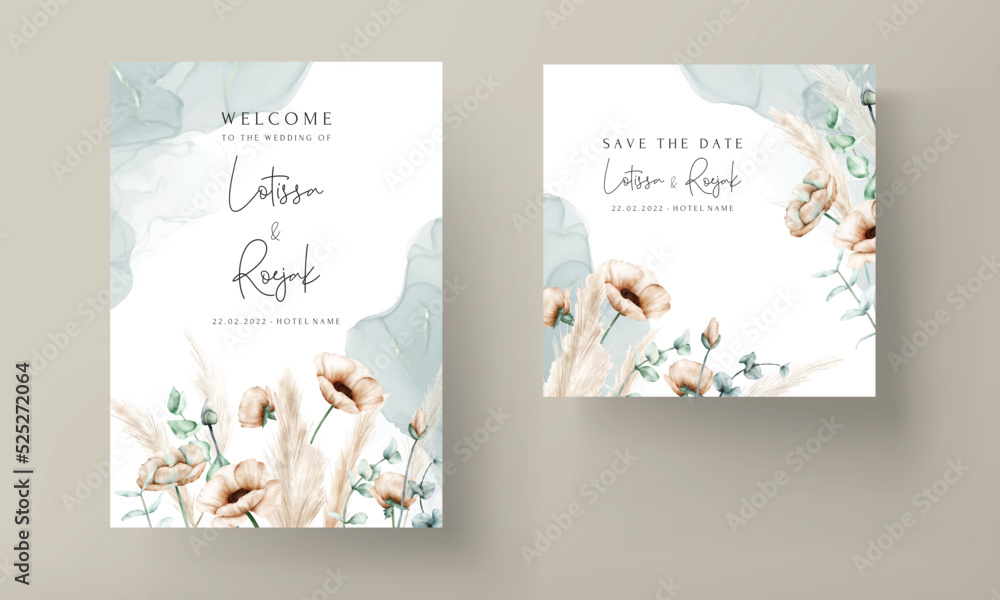 elegant bohemian wedding invitation card with hand drawn wildflowers ...