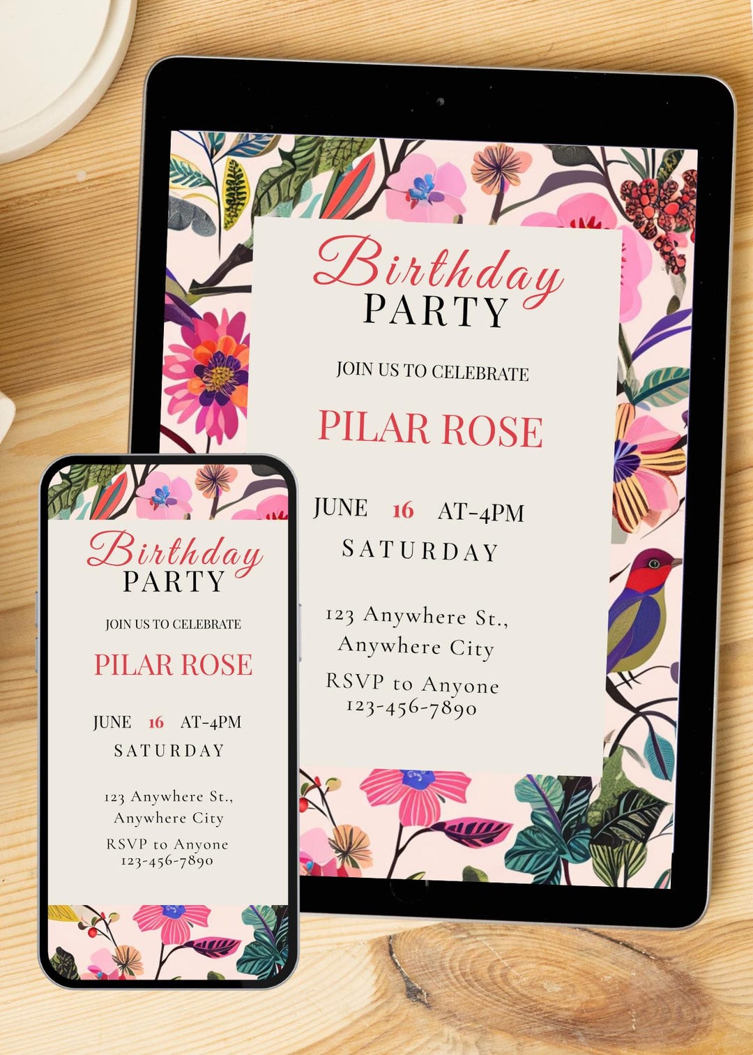 Floral Theme Birthday Party, Adult Birthday, Birthday Dinner Invitation ...