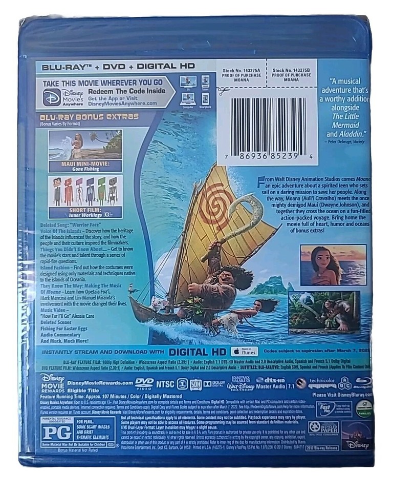 Moana (Blu-ray, 2016) + DVD + DIGITAL HD! Brand New In Wrapper ...