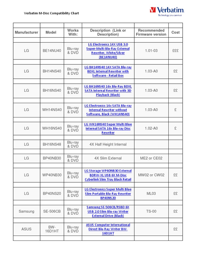 M-Disc Compatibility Chart PDF | PDF | Blu Ray | Office Equipment